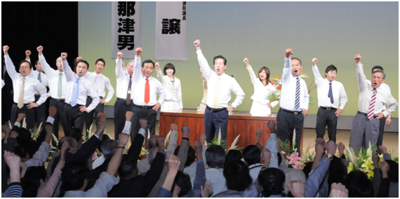 【写真】大勝利へ支援を訴える山口代表、竹内府代表、予定候補者